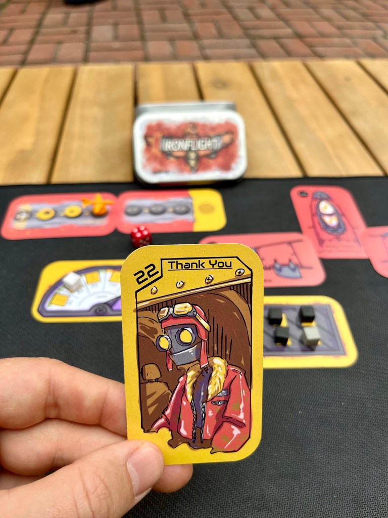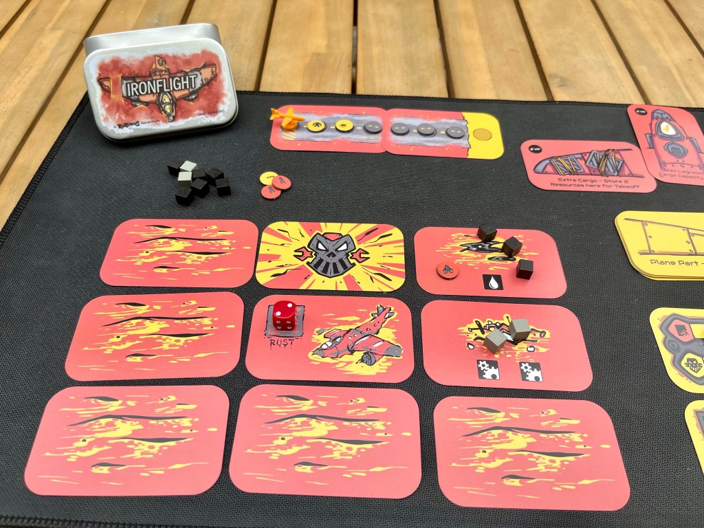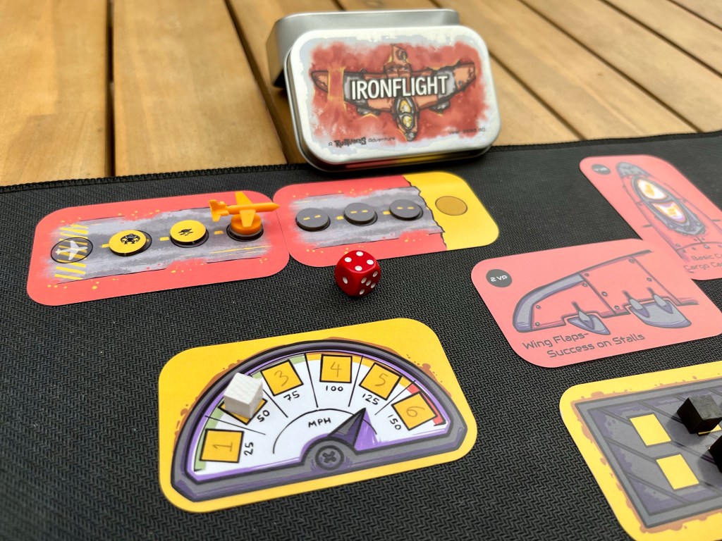 I haven’t posted too much about this game, but you will start to hear more from me about the world of the Rustlands, and the debut game from the Rustlands Partnership, “IRONFLIGHT”. The Rustlands Partnership is a collaboration between a designer named Mark Thomas and myself. We are thrilled to announce that our game IRONFLIGHT has made it to the finals of the Meta-Progression Challenge on The Game Crafter!