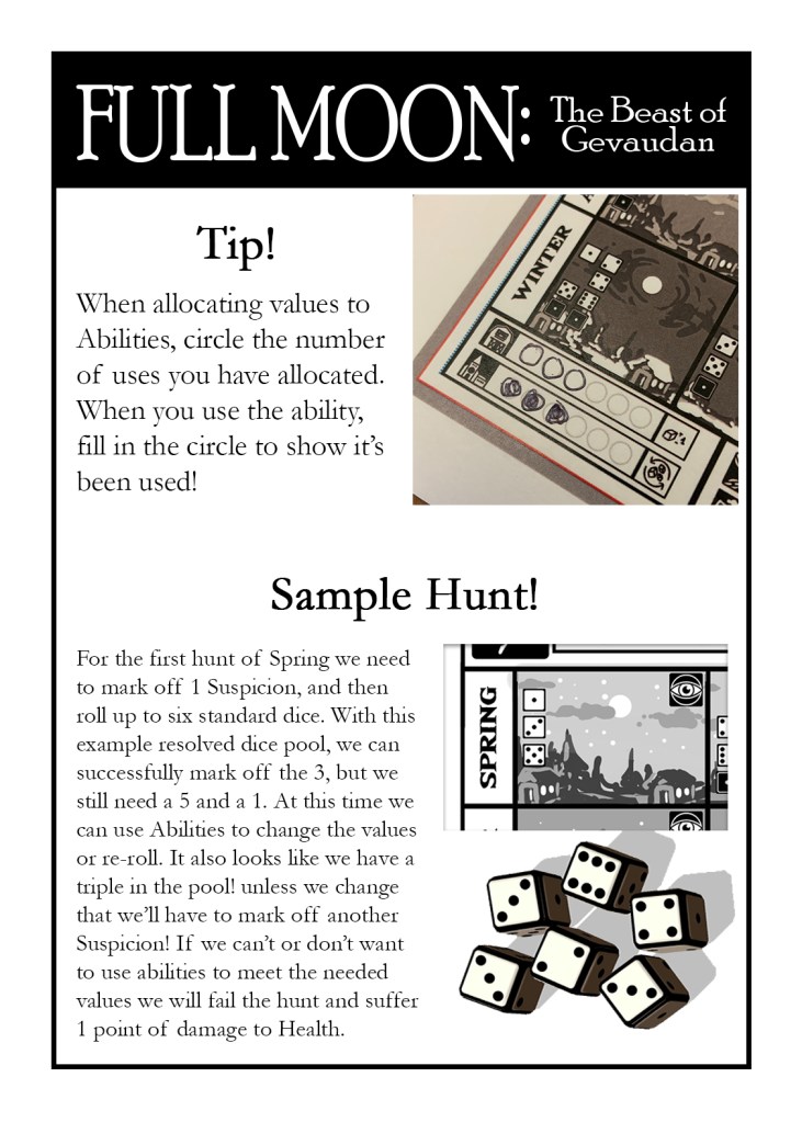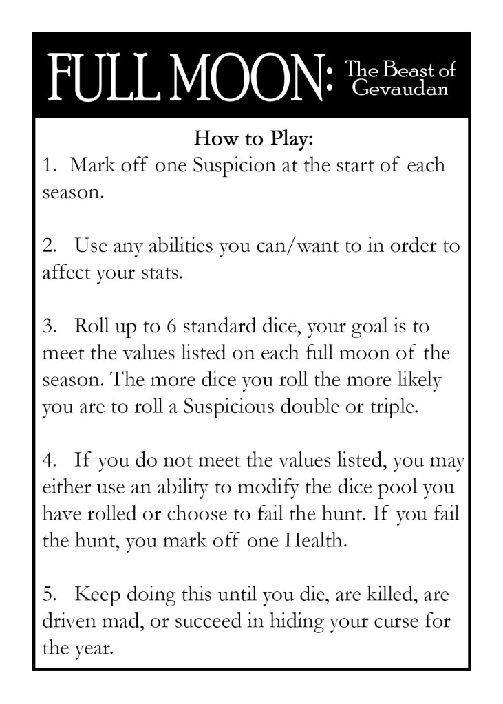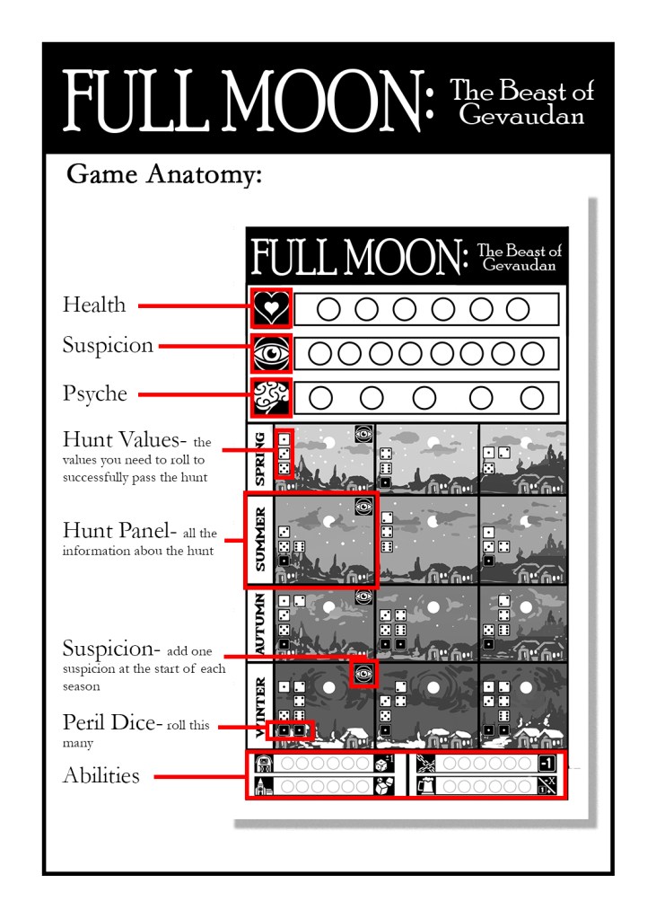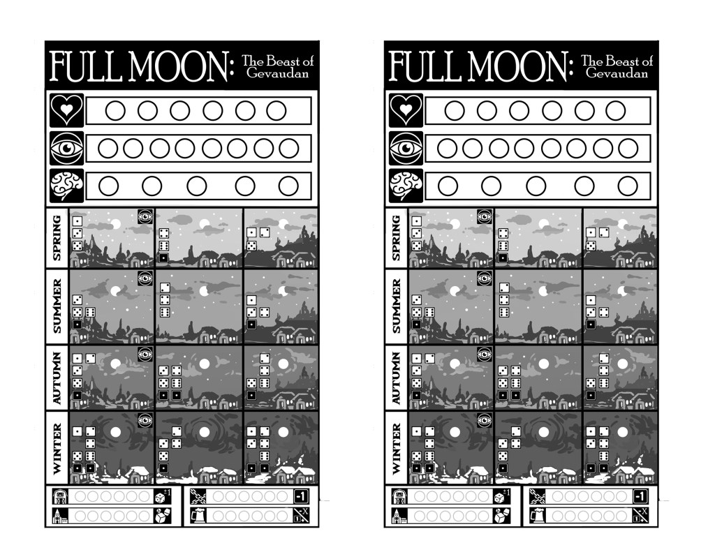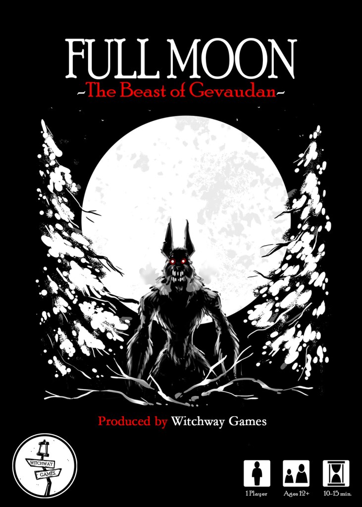 Full Moon: The Beast of Gevaudan is a brutal solo roll and write inspired by the myth of the beast that ravaged the French countryside in the mid 1700s.